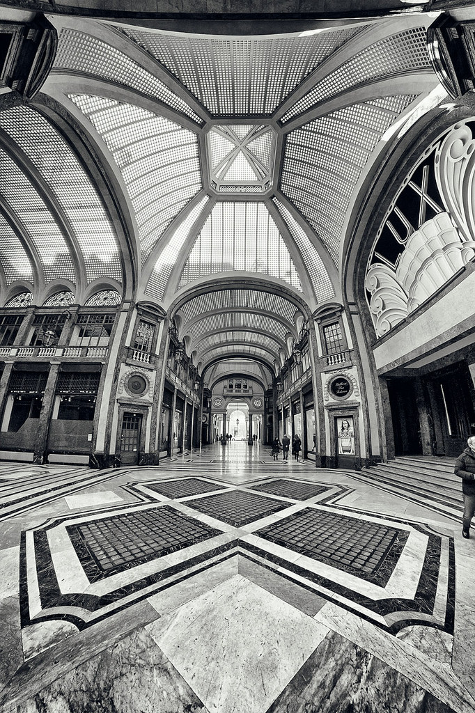 La nuova ed elegante via dello shopping di quella che è stata la prima capitale del regno, anche se solo per un attimo, mescola la geometria del razionalismo con la sua scala monumentale insieme alla decorazione sofisticata e ai materiali Art Déco, come è evidente soprattutto nell’adiacente Galleria San Federico. Sotto le luminose volte in vetrocemento viene persino istituito un cinema, il Dux, che con un semplice e politicamente corretto cambio di iniziale è attualmente conosciuto come Lux.