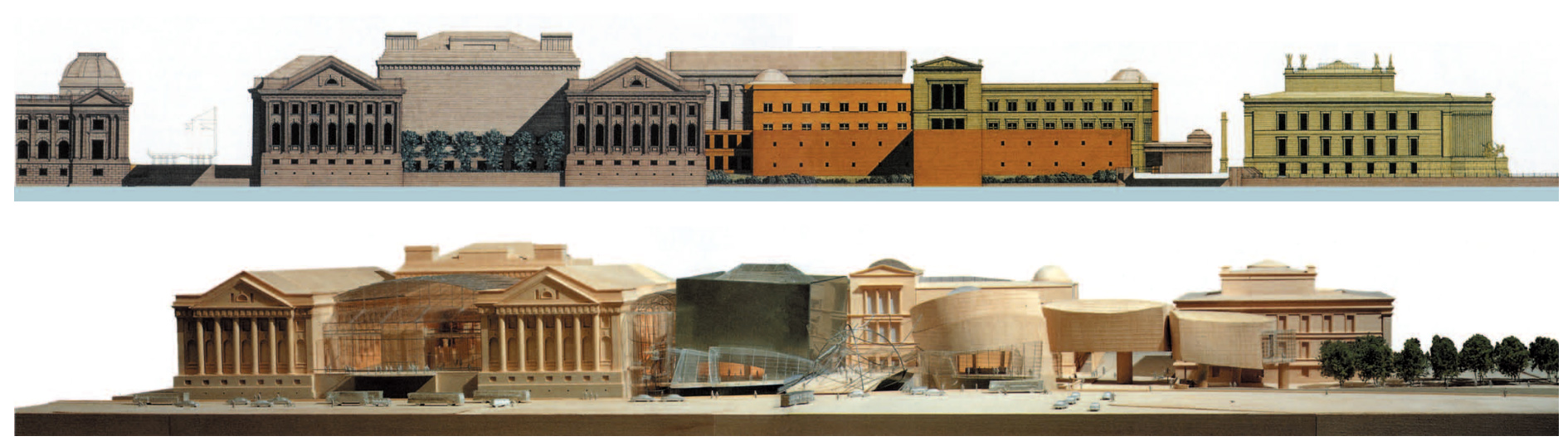 Partecipano molti grandi architetti, tra cui Giorgio Grassi e Frank Gehry (i cui progetti sono qui riportati) e vince David Chipperfield, che prevede un passaggio sotterraneo che colleghi i cinque musei, insieme a una struttura contemporanea, in fase di realizzazione, che sarà destinata all’accoglienza e ai servizi per i turisti, prevedendo caffetteria, bookshop e tutto il resto.