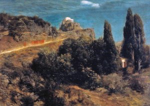Arnold_Böcklin_castello-montano-con-corteo-di-soldati-1871