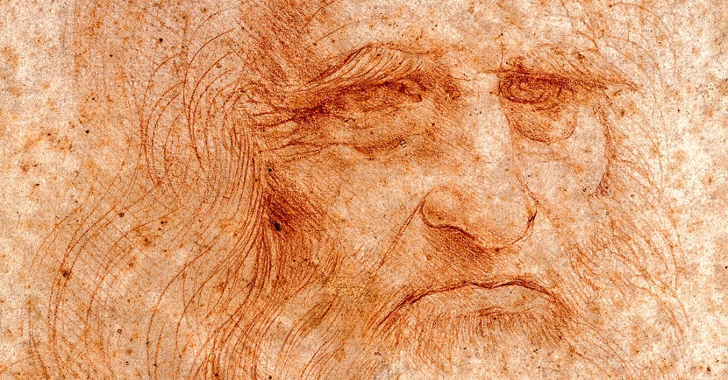 Ben più misterioso è invece l’unico autoritratto di Leonardo da Vinci, un disegno a sanguigna su carta che ritrae il grande maestro all’età di circa sessant’anni.