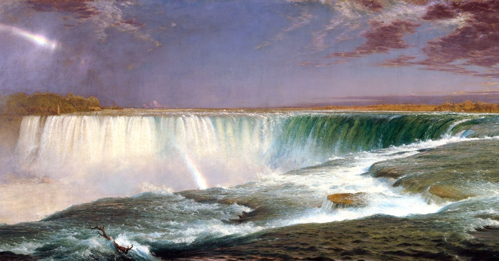 Per lui, tutto ha inizio nella Valle del fiume Hudson (luogo simbolico per tutta una generazione di artisti americani di cui ho parlato qui), dove inizia a dedicarsi ai grandi paesaggi selvaggi che stanno iniziando a lasciare spazio alla civiltà, così da immortalarli prima che scompaiano. Da qui, si avventura sino a superare le Cascate del Niagara, la cui riproduzione origina minuziosi e monumentali capolavori, scoprendo porzioni sempre maggiori di territorio.