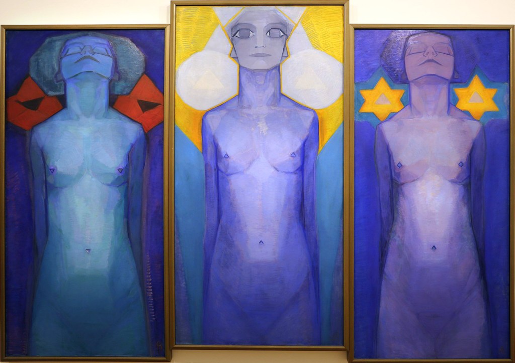 Dobbiamo quindi vedere questi tre ritratti come una sorta di trittico simbolico, dove le figure femminili rappresentano un’umanità che arriva all’armonia, uno dei cui simboli è proprio la stella di Davide che troviamo sulla destra.