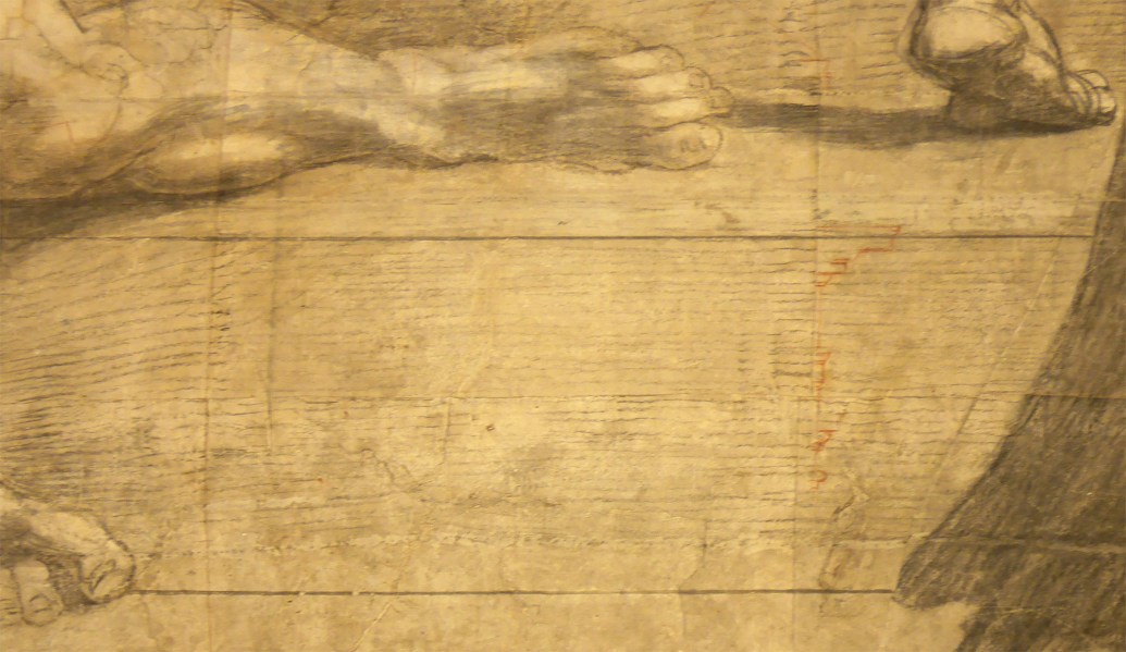 Cartone preparatorio per la Scuola di Atene, dettagli architettonici (in rosso)