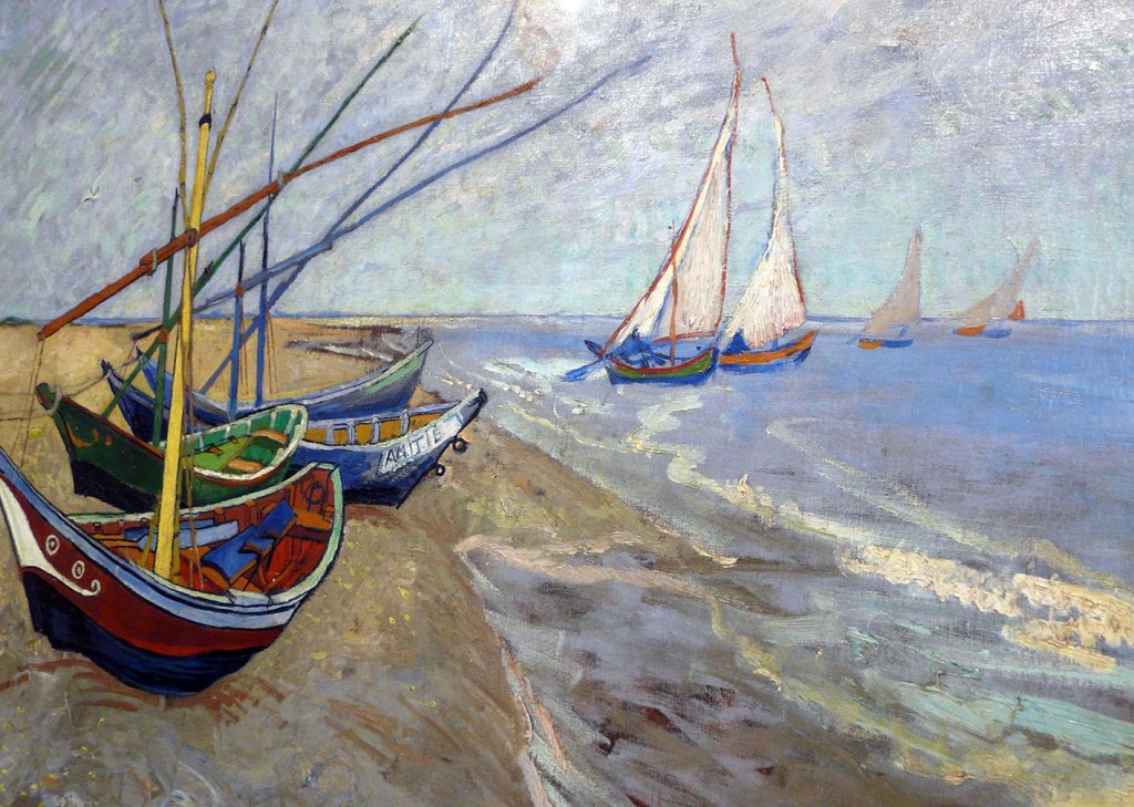 Sicuramente Pescherecci sulla spiaggia di Saintes-Maries non è il primo dipinto a cui pensiamo parlando di Vincent Van Gogh, però questa settimana mi è capitato sottomano e sono rimasta impressionata dalle sfumature impercettibili e sottili che mostra questo paesaggio apparentemente poco colorato.