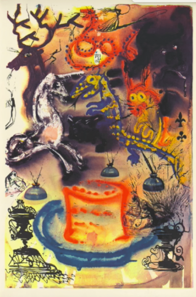 Se andiamo a fondo, il rapporto tra l’artista spagnolo e il racconto sembra essere molto più intenso di quelle dodici bellissime eliografie che portano il tratto inconfondibile di Dalì.