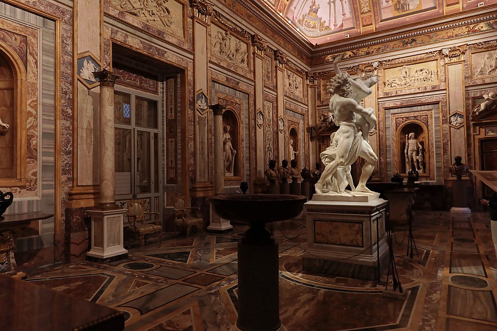 Tra i dipinti di Raffaello e Caravaggio e le sculture romane si ha la possibilità di ammirare i più grandi lavori di Gian Lorenzo Bernini, massimo esponente del Barocco, ultimo artista italiano in grado di eccellere in diverse discipline. Se il David ci colpisce per l’espressività e la concentrazione del volto, con il Ratto di Proserpina Bernini è riuscito a fare l’impossibile, regalando vita perpetua a un’opera statica e ferma nel tempo e nello spazio. Ebbene, il Ratto di Proserpina non sembra neanche una scultura per la morbidezza e la fluidità del marmo.