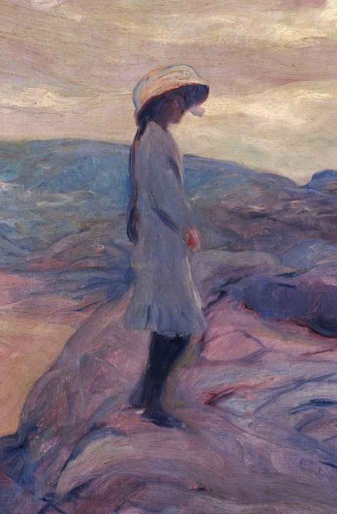 In questo momento di passaggio dall’estate all’inverno, nel mezzo della situazione incerta in cui stiamo vivendo, io vi confesso che vorrei riuscire ad estraniarmi e diventare per un attimo la ragazza di questo quadro di Antonio Carneiro, felice di essere sola di fronte alla brezza marina.
