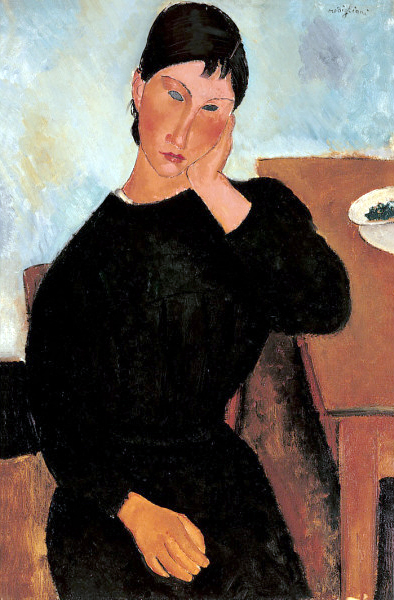 Amedeo Modigliani, Elvira appoggiata al tavolo.