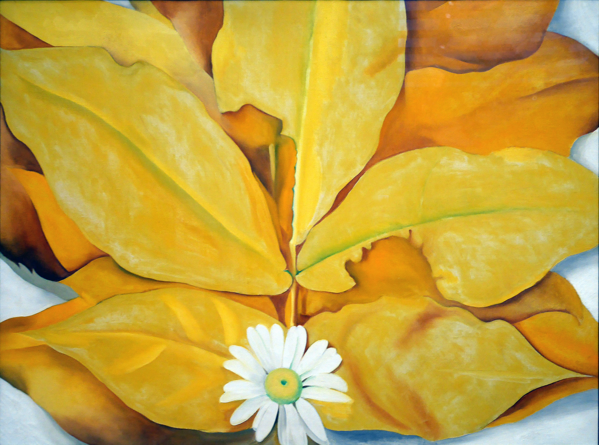 Georgia O’Keeffe-Foglie di noce americano gialle e margherita-1928