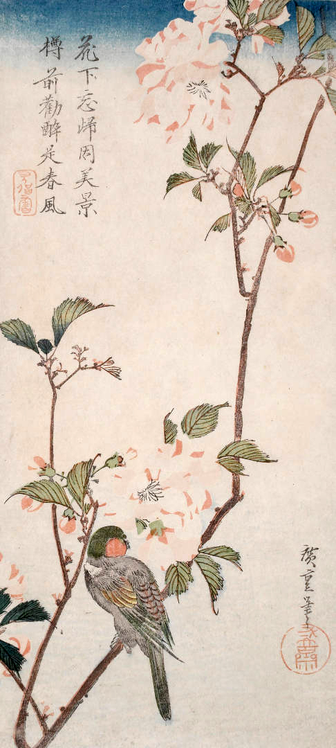 utagawa-hiroshige-aronia-e-ciuffolotto-1832-circa